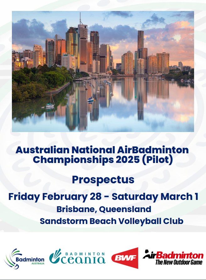 For entries and detailed information on the Australian National AirBadminton Championships 2025 (Pilot), please read the Event Prospectus available for download below.